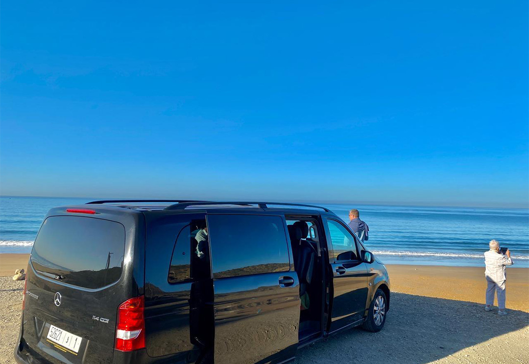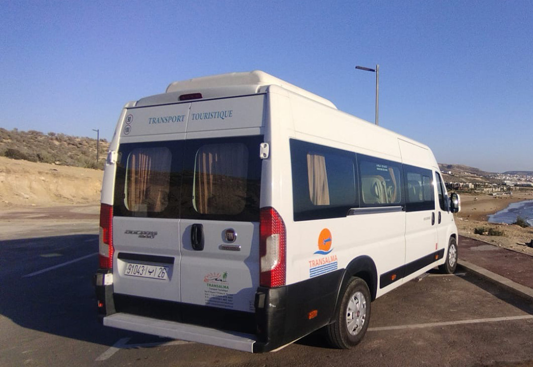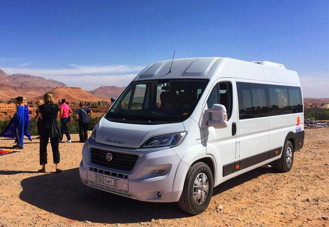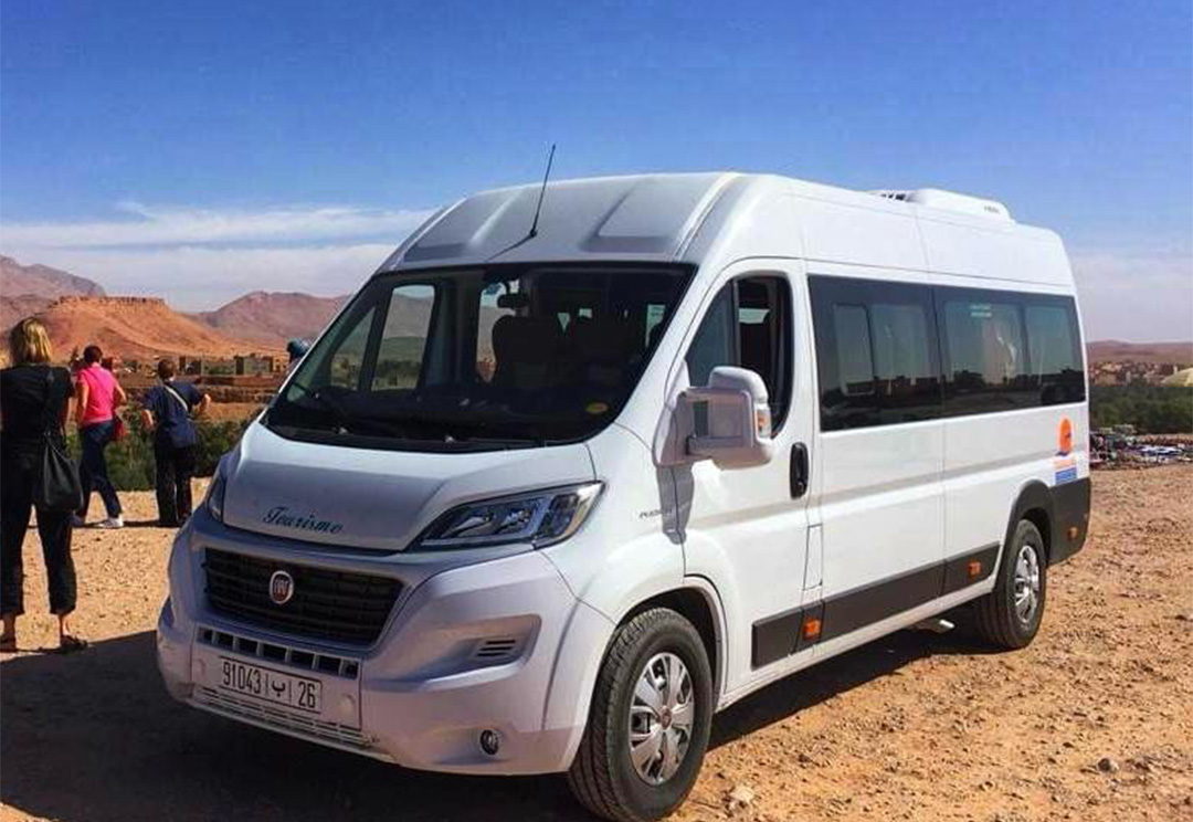 Vehicle Type: The van is likely a passenger transport vehicle, designed to accommodate tourists comfortably during their travels in Morocco. It appears modern and well-maintained, suitable for both short and long-distance journeys.