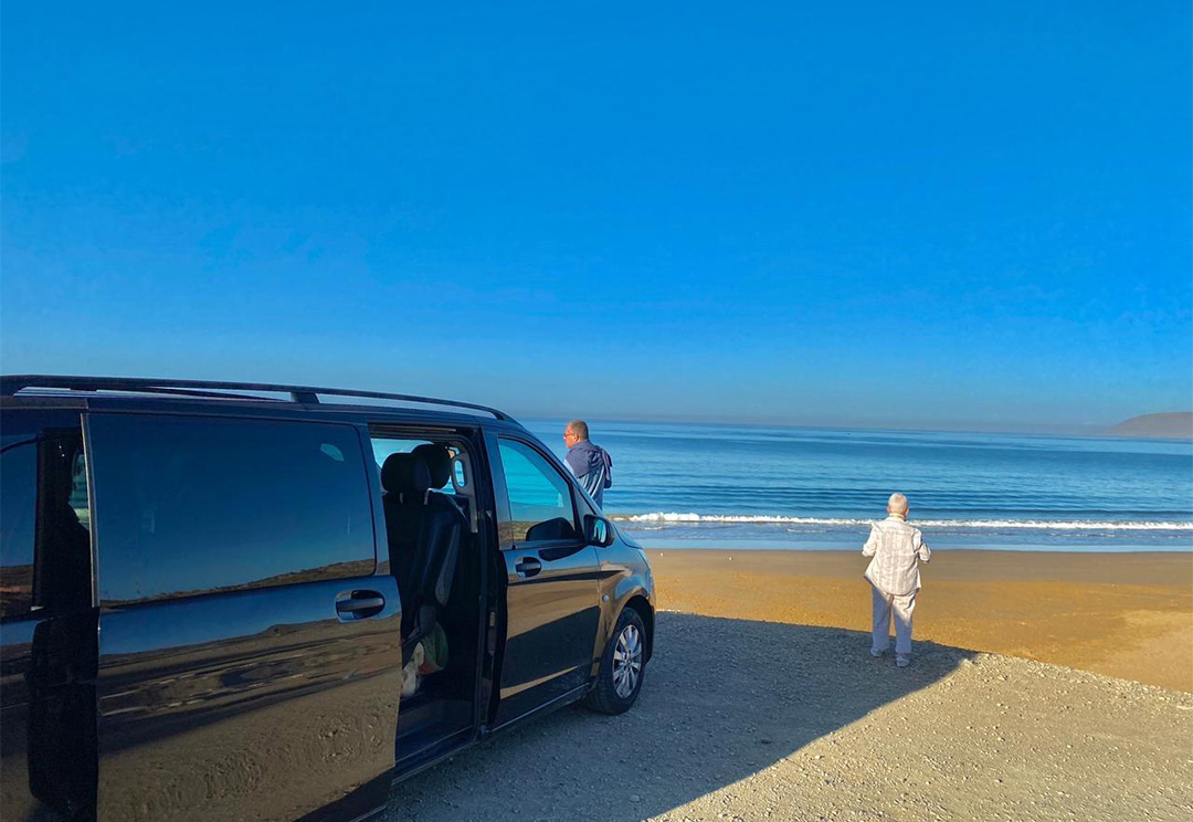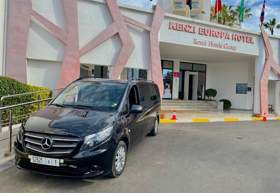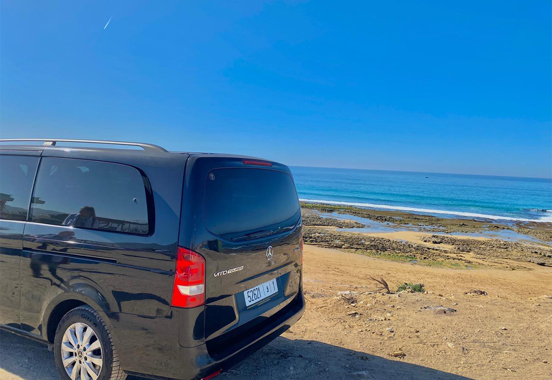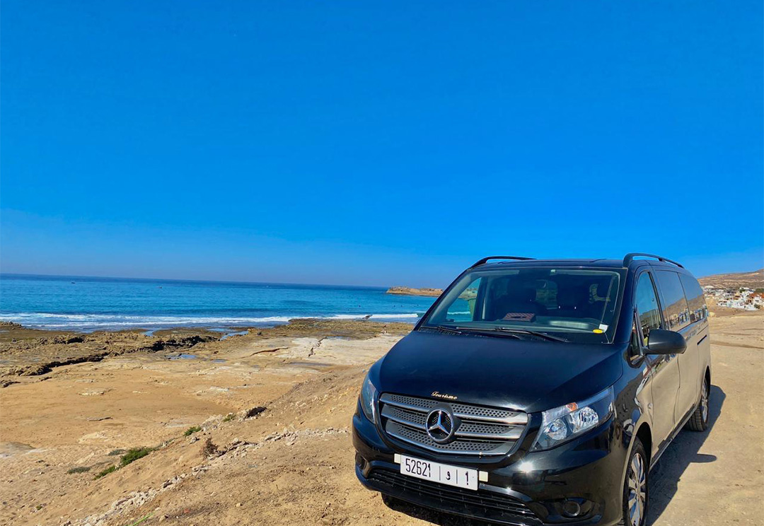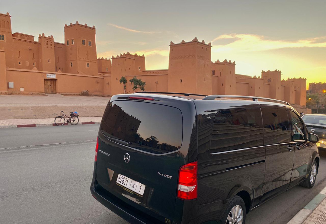 Vehicle Type: The van is likely a passenger transport vehicle, designed to accommodate tourists comfortably during their travels in Morocco. It appears modern and well-maintained, suitable for both short and long-distance journeys.