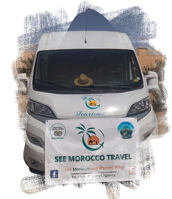 Services: “See Morocco Travel” is a tourism and travel agency that offers various travel experiences in Morocco. The banner mentions, “See Morocco in Different Ways,” indicating that they provide diverse travel options, possibly including cultural tours, desert excursions, city tours, and more.